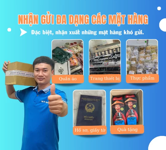 Nhận từ hàng thông thường đến hàng đặc thù: thực phẩm, điện tử, hàng có pin, hàng cồng kềnh, hàng dễ vỡ.